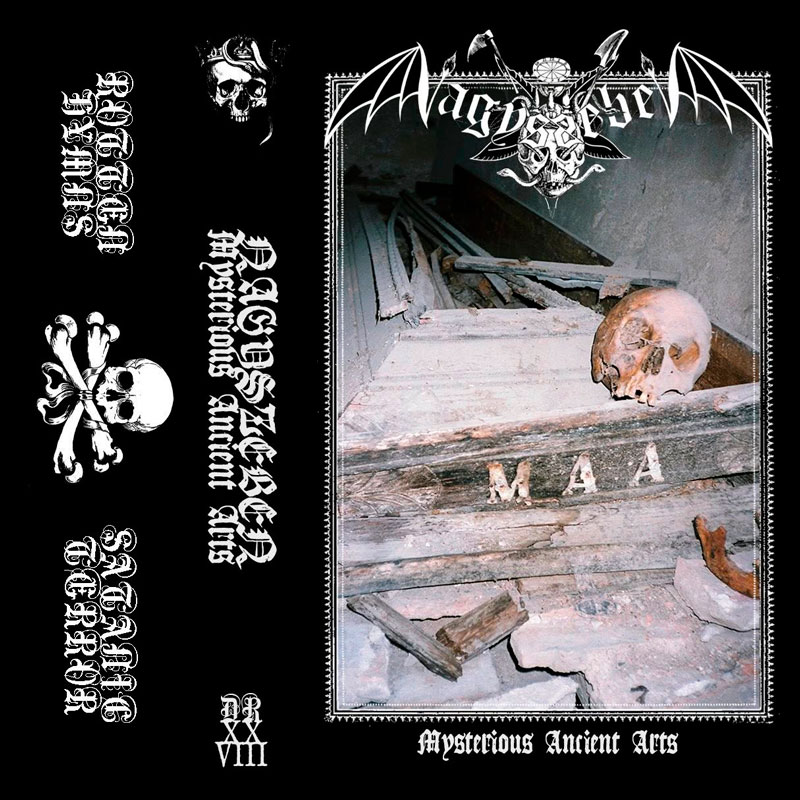 The tape appeared via Death Revelations. The vinyl edition found its way to Lucifogo Records, a label that seems to revolve solely around Nagyszeben, as if it exists only for this single force. The cover, a rotted coffin, a skull as a seal, splintering wood, carries the same intent as the music: an object that appears to rise from a dark depth where no daylight exists.
